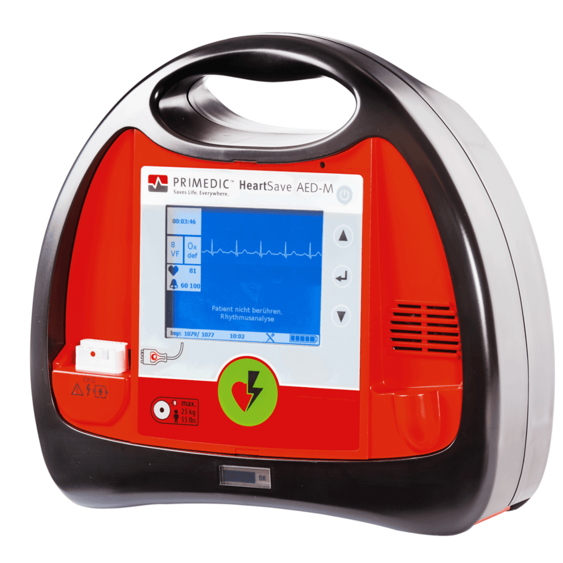 • وضع طب الأطفال عن طريق الضغط على زر – لذلك لا يلزم وجود أقطاب كهربائية خاصة للأطفال في حالة الطوارئ