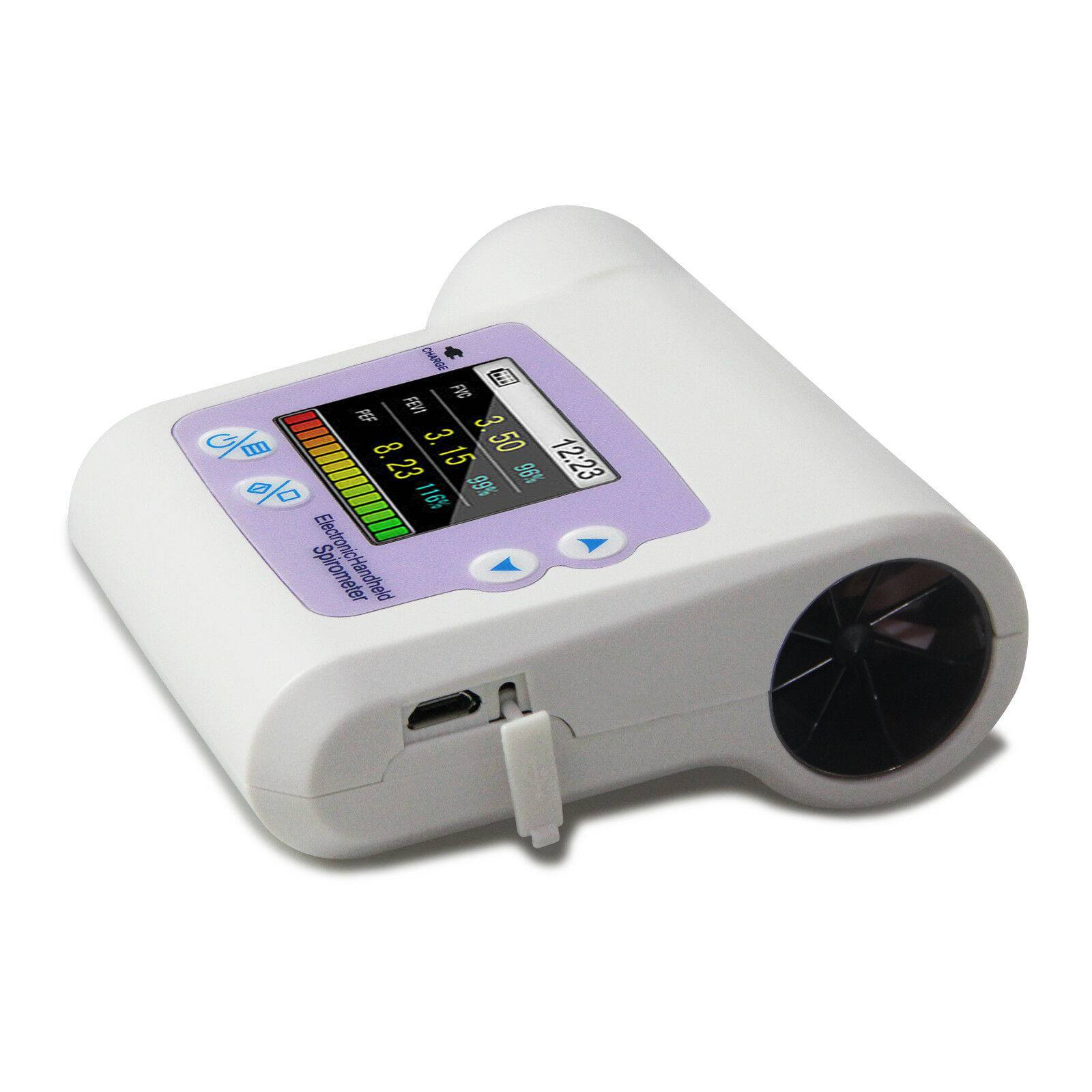 جهاز SPIROMETER هو جهاز محمول باليد لفحص حالات الرئة ، ويعتمد وضع الأشعة تحت الحمراء لقياس العناصر النسبية ، وهو قابل للتطبيق في المستشفى ، Clinique ، الأسرة للاختبار الروتيني.
