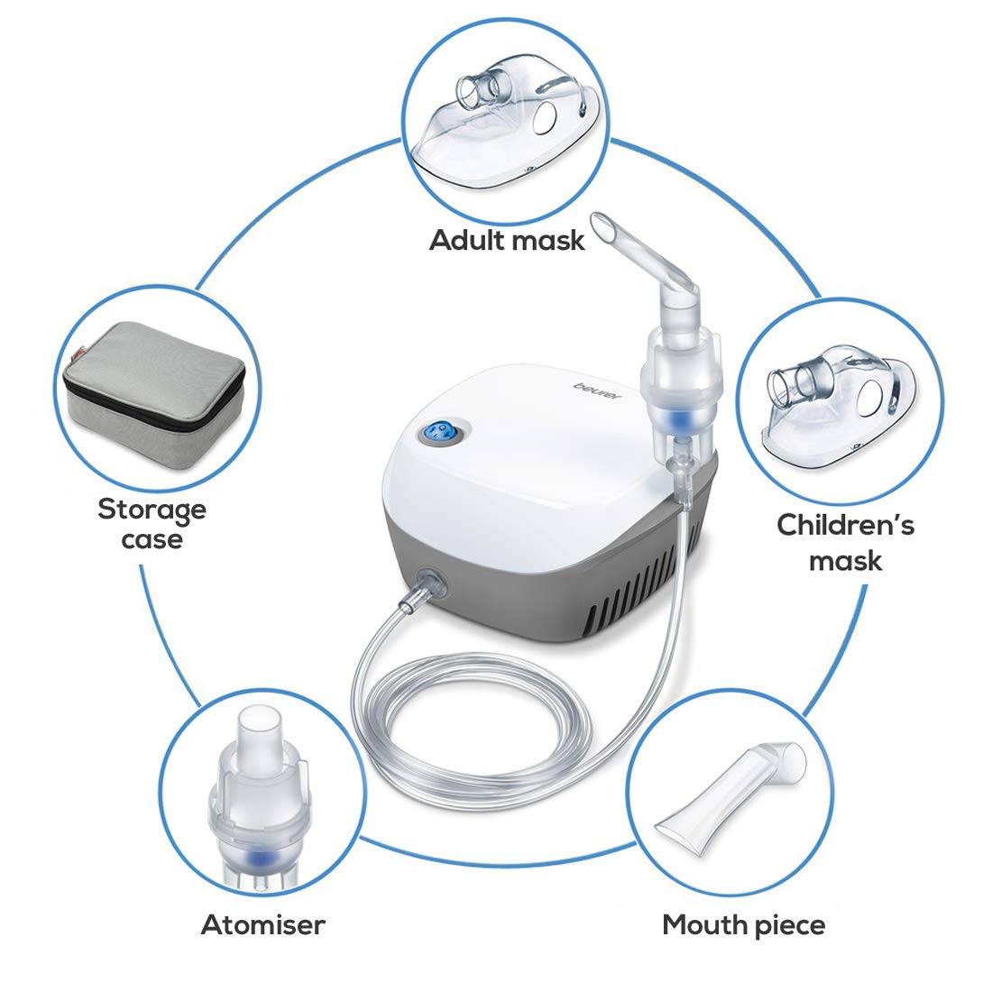 جهاز نبيوليزر IH18 سيبخر الدواء الي جزيئات صغيرة (3.16 ميكرون) لتتمكن من الوصول لكل اجزاء الجهاز التنفسي (الشعب , الشعيبات الهوائية و الحويصلات ) و بالتالي يساعد في علاج مشكلات مجرى التنفس العلوي والسفلي ونزلات البرد والربو وأمراض الجهاز التنفسي بشكل سريع و فعال