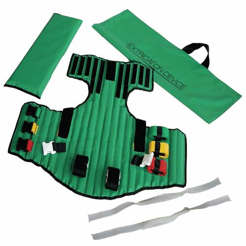 Essential ambulance equipment: stretchers, splint kits, and portable ventilators.