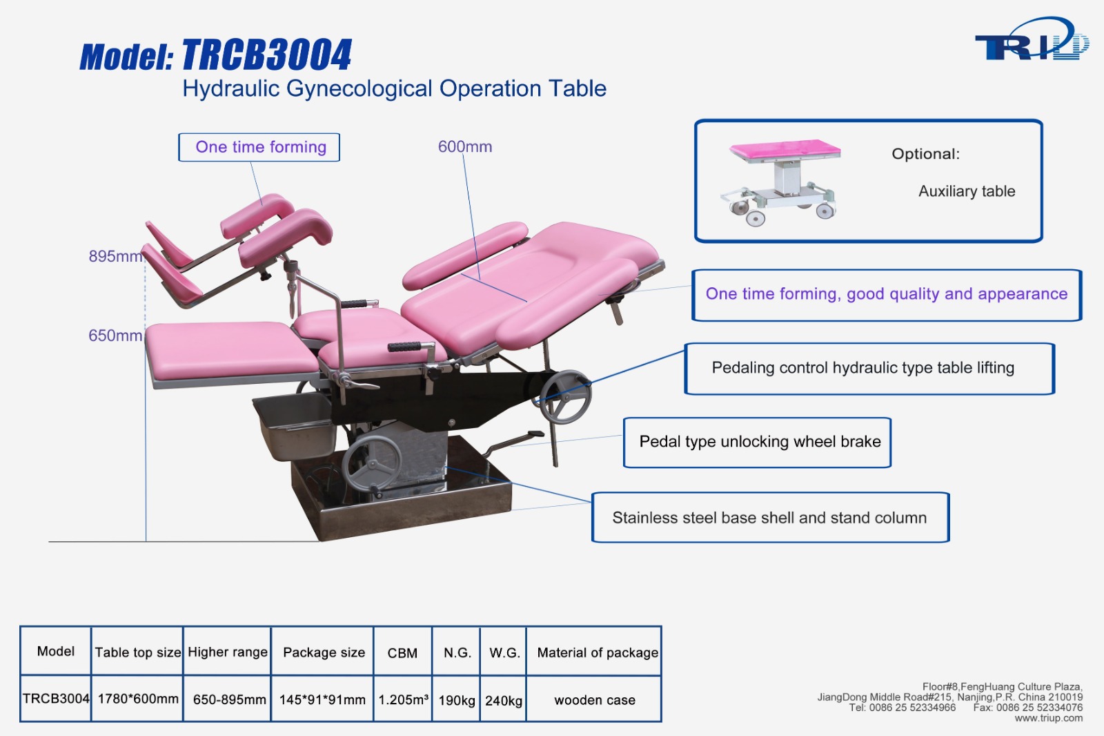 - TRCB3004 multi-purpose obstetric table is designed for delivery, abortion and gynecological examination.