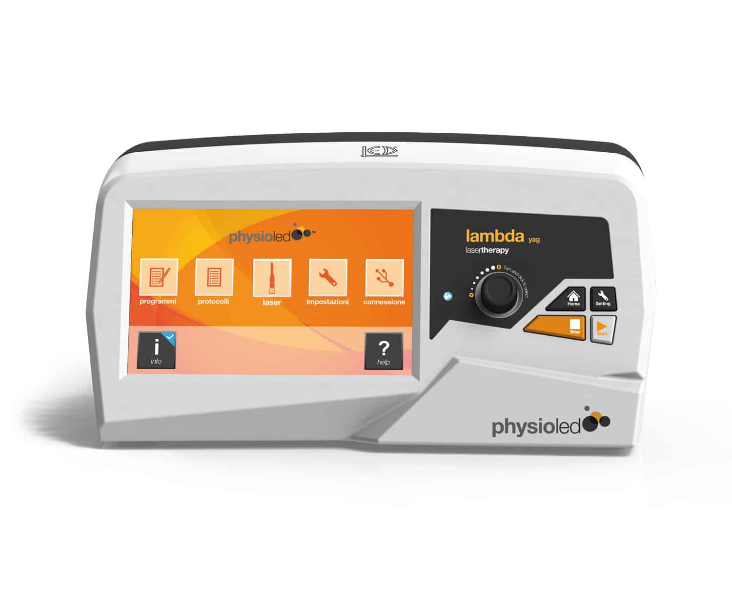 - lambda yag is a laser therapy equipment, which allows to work in depth on different types of pathologies. The wavelength used is 1064nm. This, combined with the emission power, allows a good diffusion and the right absorption by human tissue, by combining an analgesic effect, anti-inflammatory effect and of the tissue regeneration.