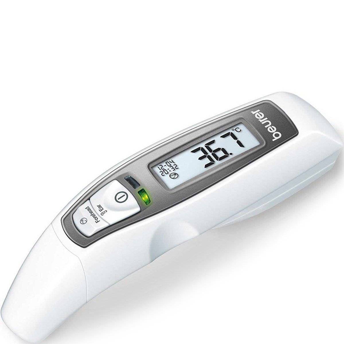 - A real all-rounder! In addition to ear and forehead measurement, the thermometer can also determine surface temperatures. The temperature alarm and the date and time display are perfect additions for simple and convenient measurement.